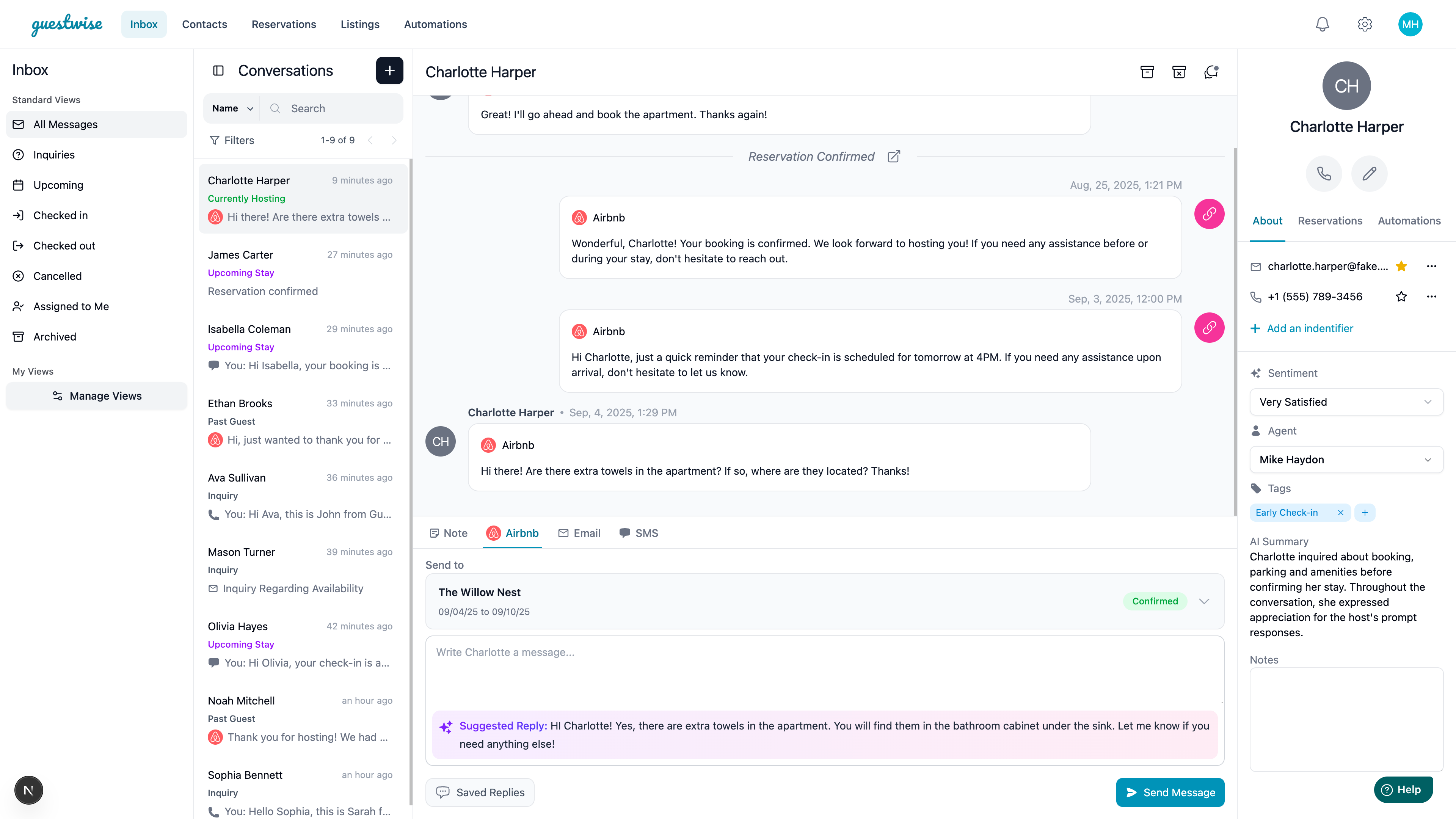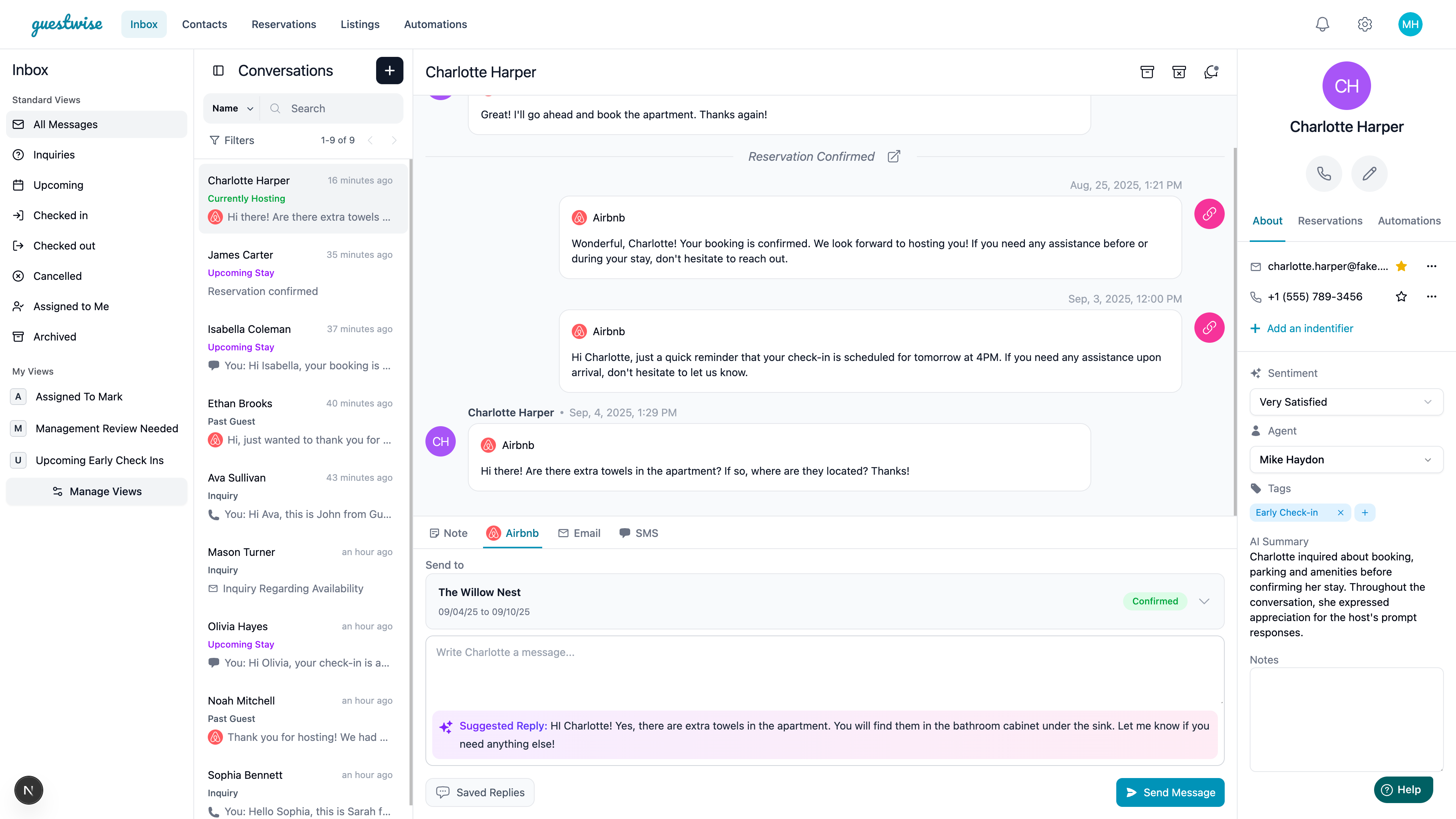 Advanced AI suggested responses based on guest inquiries, helping you reply faster while maintaining a personal touch.