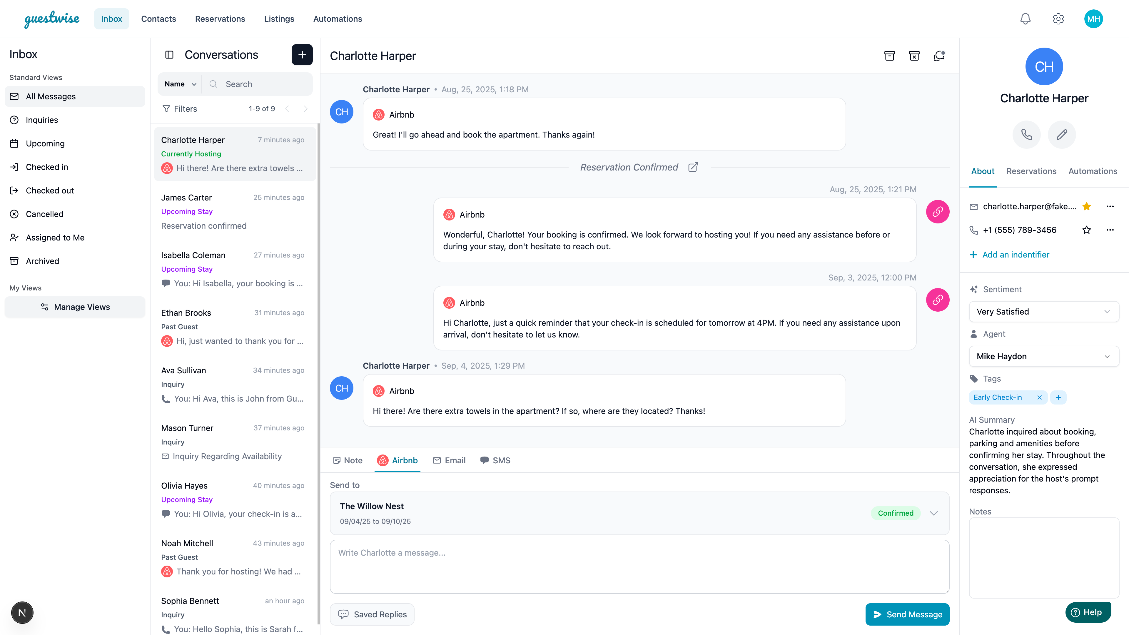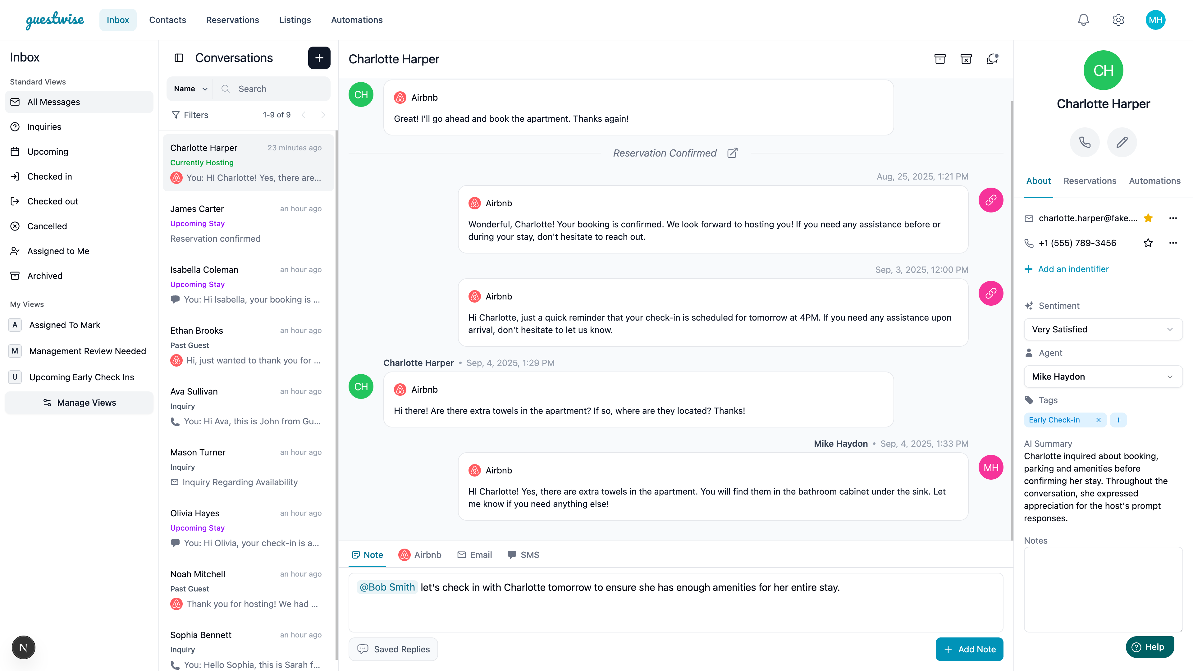 No more switching between apps - Airbnb, email, SMS, and phone calls are all threaded into a single, organized conversation per guest.